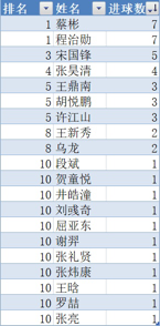 下表是射手榜,蔡彬与程治勋共同获得金靴