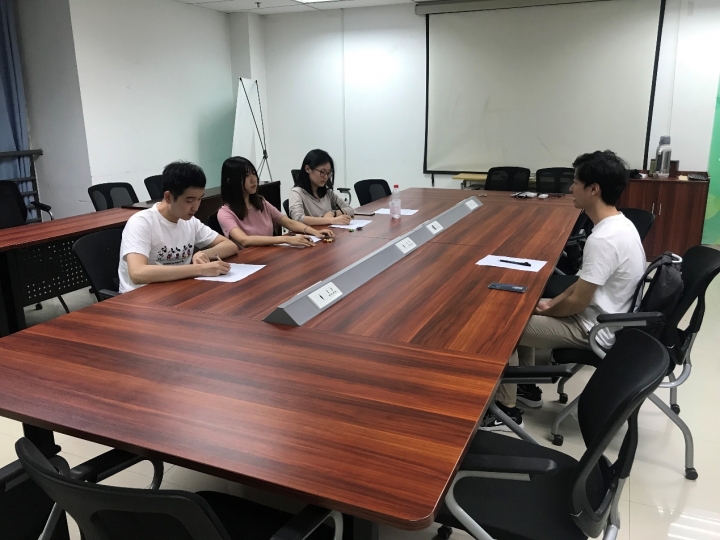 无领导小组讨论结束后,主席团对报名同学进行单独面试,在面试过程中,面试官们简要介绍了研会各个部门的职能,并对每位同学进行了提问。新同学也畅所欲言,对自己感兴趣的问题和研会的相关情况进行了解。