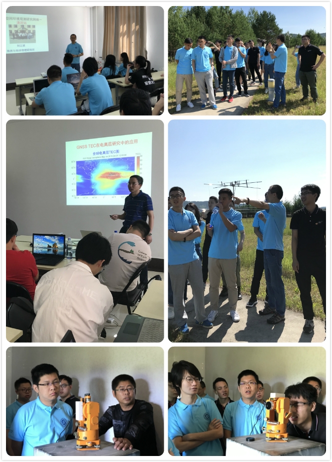 2019年7月6日,我院空间物理专业16级本科生在带队老师的带领下,抵达黑龙江省漠河野外观测站开展为期9天的空间物理专业实习。期间,中科院地质地球所刘立波研究员和我院雷久侯教授,分别就磁力仪、电离层测高仪、流星雷达和全球导航系统探测电离层等观测原理向同学们做了详细的介绍,并带领大家参观了观测站中相应的探测设备。通过台站工作人员的讲解与操作演示,同学们动手操作仪器,并与台站工作人员的沟通交流,同学们了解了台站空间环境观测的发展历程,体会到观测数据来之不易,对空间科学观测与数据有了新的认识。