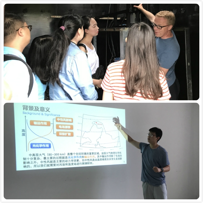 实习期间正值加拿大工程师在观测站安装法布里-珀罗干涉仪(FPI)。7月13日下午,我们非常有幸邀请到加拿大工程师Trond和中科院地质地球所研究生李文博,分别给同学们介绍了FPI的仪器构造和数据处理方法。至此,本次实习带领同学们领略了空间天气的因果链,通过不同观测设备对地球中高层大气中的成分、温度以及风场等主要参数进行了数据分析,初步体验了科学研究方法,同学们受益匪浅。