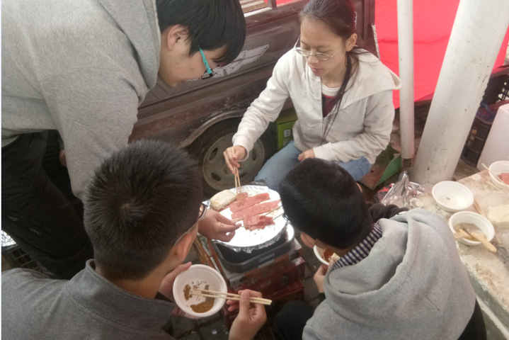 中午11点,大家围坐在景区提供的临时摊位,取出班长王佳辉,万曦和程美琳及其他同学一同准备的烧烤食材,点上事先准备的烤炉,进行了厨艺大比拼。同学们边烤边吃、边吃边聊、互相指导,同时还不忘相互递送烤好的成品,在协作和关爱中,充分享受“自己动手、丰衣足食”的乐趣。烧烤结束后,大家没有忘记爱护环境,主动将垃圾回收,这也是我班学生一贯的优良作风。