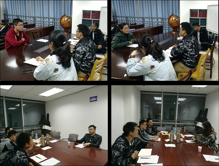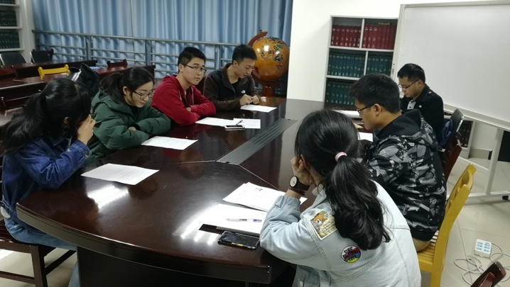 宣传期结束后,有11名同学报名参加,项目组对报名同学进行分批面试。面试分两个环节,即无领导小组讨论阶段和单独面试阶段。在无领导小组讨论阶段(图为大家在进行无领导小组讨论),参加面试的同学阅读给定新闻材料,畅所欲言,积极讨论,表达自己的看法与观点,现场气氛十分活跃!