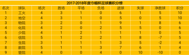 至此我院女足今年取得三胜一平积10分与工火并列第一。