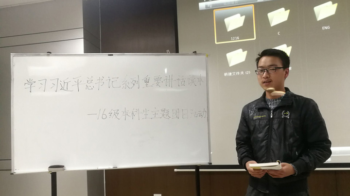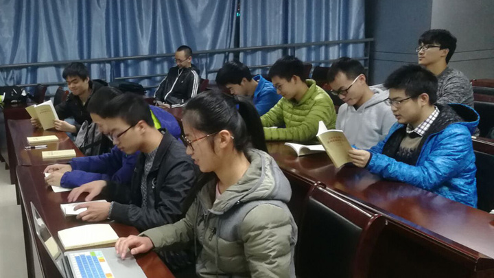 于是乎,在12月16日晚20:00在结束了习题课后,2016地空本科班于地空楼706会议室内进行了第一次理论学习,主要以介绍十九大报告与班委导读读本形式展开。