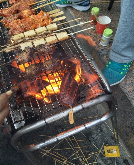 中午的时候,虽然有部分女生已经回去了,可大家的热情丝毫没有削减。至于午饭,我们进行了烧烤。本以为烧烤不够吃的,可是因为有人提前离开,也有人选择不吃继续玩,所以并没有出现所谓的哄抢烧烤的情况。当然,这可能还有另一方面的原因,那就是,烧烤的人技术太差了,烤出来的根本不好吃(滑稽脸),看图上那根鸡柳就知道了。