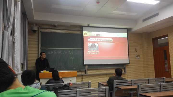 2017年11月25日晚,我院2015级本科班在二教2104进行了一场以学习十九大和入党介绍为主题的班会。会议还没开始,大家都已经坐满了教室。同学们热情高涨,都期盼着从这场班会中学到很多自己平时学不到的东西。