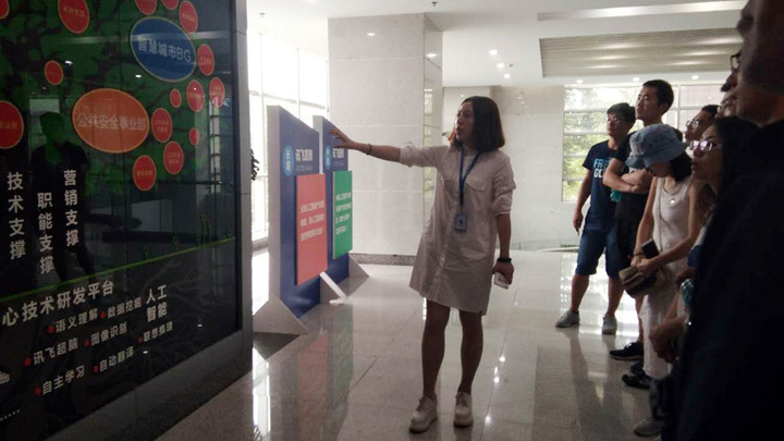 在工作人员的带领下,我们了解了讯飞公司的发展历程以及涉及的主要业务领域,了解到一个优秀公司的崛起需要优秀的组织框架和勤劳的员工在背后支撑。