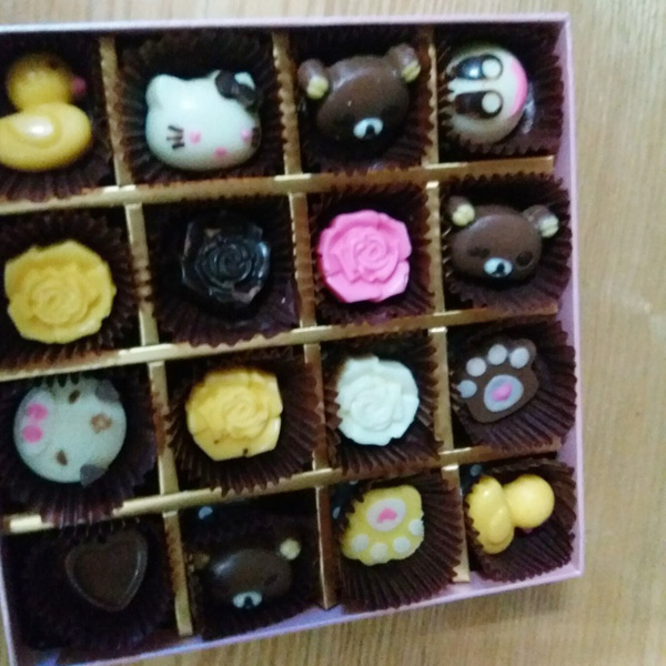 中午下课了,各班班长便代表全班男生给班上女同学发女生节礼物。礼物是用粉色包装纸包裹的各式各样的巧克力,形态各异,各种小动物形状,分外可爱。几大盒甜甜的巧克力让这个女生节透出丝丝甜意。