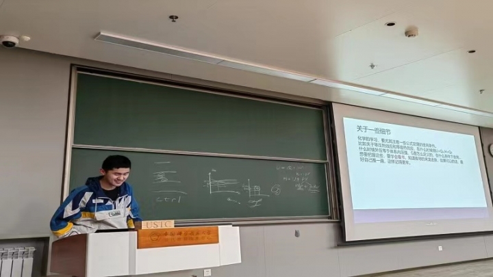 蔡润良分享了化学原理的学习经验。结合自己化学原理的学习经历,他首先介绍了自己最初学习时的困难,接着分享了解决困难的方法以及学习细节。除了对化学原理这门课程进行介绍,他还分享了对于其他化学课程以及大学学习整体学业应有的把握。在蔡润良的讲解下,同学们解决了许多化学原理学习上的困惑。