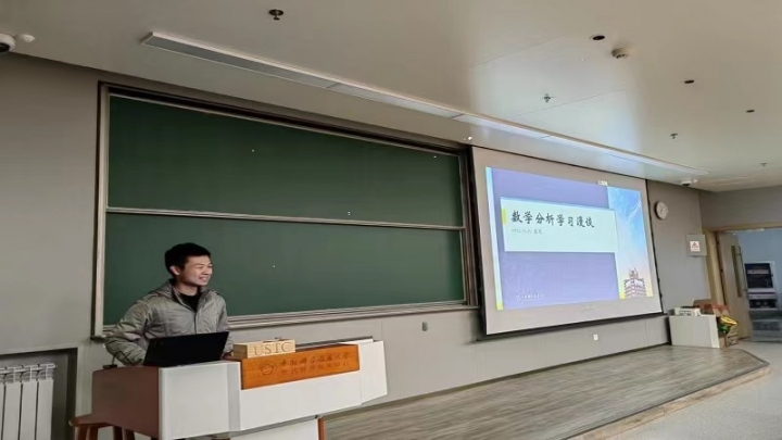 袁悦向同学们介绍数学分析的学习方法与技巧。他分别从掌握程度、熟练程度及考前准备三个方面进行分享。掌握程度方面,他讲述了在预习、视频学习、提高课堂效率和记笔记上的心得体会,特别强调了课本与PPT对于学习的帮助;熟练程度方面,他既提出了关于课后作业与复习的建议,分享了常态化复习的方法,又给同学们推荐了习题训练的参考书籍;考前准备方面,他分享了相关准备经验。袁悦的详尽介绍让同学们受益匪浅。