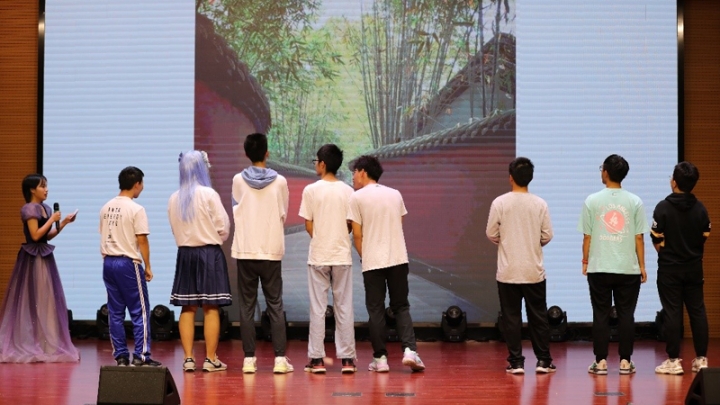 临近中场,现场迎来活动环节。精彩的游戏“看图猜地名”激发了全场观众的参与热情,在游戏趣味与丰厚奖品的吸引下,一组组观众在工作人员引导下上台答题,展示着自己丰富的地域知识与灵活的思维模式,在享受游戏的同时领略了不同地区的风土人情之美。随后的抽奖环节更是令人激动不已,后台根据电脑随机抽签选择了十六位幸运观众,分别获得晚会吉祥物玩偶、文创书包、科大定制马克杯,而在抽签进行的过程中,可爱的熊本熊将吉祥物带上舞台,向观众展示,其憨态可掬的姿态可谓“萌上加萌”。