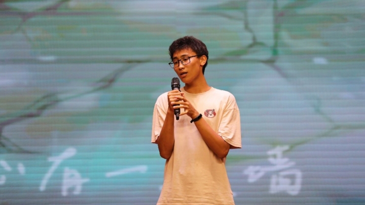 在此之后,舒立迅同学深情献唱《心墙》,动人的歌声飘满了整个报告厅。余音未散时,科乐喜剧社母子跃同学的脱口秀《南七生活指北》迅速引爆了全场的欢笑,他用诙谐的语言、风趣的段子讲述自己在“南七技校”的生活种种,令人觉得十分熟悉却又在意料之外,搏得阵阵掌声,将晚会的气氛推向了一个高潮。