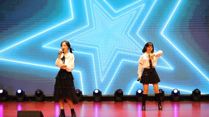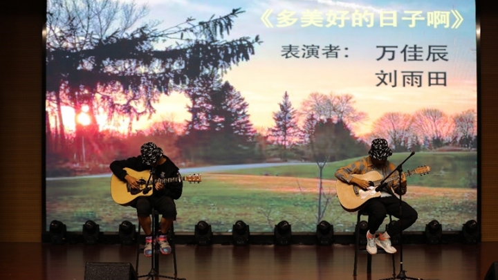 随后,精彩的节目异彩纷呈,持续吸引着观众的目光。万佳辰、刘玉田同学的精彩吉他指弹《多美好的日子啊》旋律优美、曲声悠扬,在灯光的映衬下,琴声触动着每个人的心弦,使观众沉浸在对美好时光的遐想之中。郑章琴、陈永焱同学的歌曲《只对你有感觉》则活力四射,充满青春的动感与激情,引来阵阵掌声与欢呼。之后是由校舞蹈团带来的舞蹈《多嘎多耶》,简洁明快的词曲、活泼轻快的舞姿展示着别样的民族风情,仿佛引领人们一同“唱起来,跳起来”。