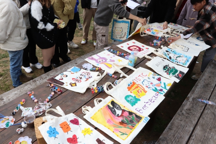 填饱肚子以后,同学们陆陆续续开始了丙烯颜料DIY。DIY以“春天”为主题,以绿色环保为出发点,在纯色帆布包上用颜料勾画各种图案,充分展示了个人的审美和个性,增加了包包的美感和附加值。在确定好自己喜欢的包包图案后,大家纷纷开始执笔,用自己喜欢的颜色的丙烯颜料描绘绚丽色彩,各自发挥创意。