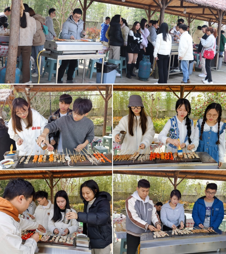 中午,老板提供了食材,同学们分组动手开始户外烧烤。通过自己的努力得到的美食,味道果然不一样!没有什么事情是一顿烧烤解决不了的,如果有,那就再凑一桌打打“掼蛋”吧。