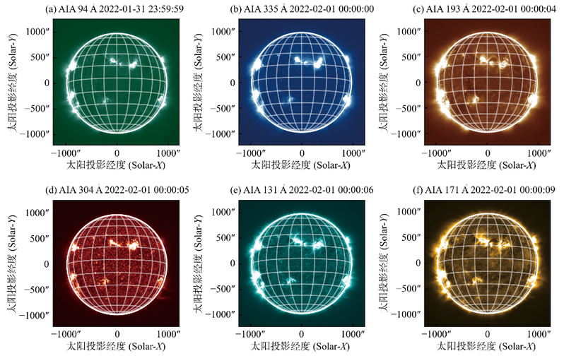 图2太阳爆发事件时SDO卫星于2022年1月31日观测的不同波段日面成像
