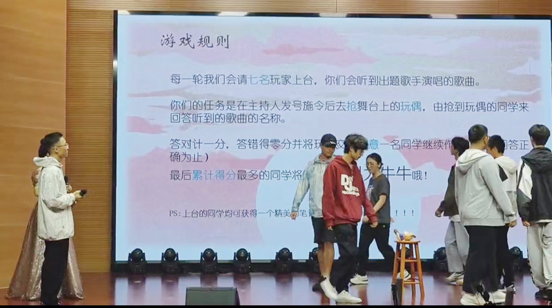 当大家还在回味刚刚的乐趣时,台下却忙碌了起来。原来到了每年由地空新生带来歌曲串烧的时间了。同学们以宿舍为单位,选择自己想要演唱的歌曲带给大家。与此同时,在大屏幕上还不断滚动着同学们照片,这些照片记录了一个多月来同学们相处的时光,在聆听着青涩歌声的同时回忆也涌上了每个人的心头。