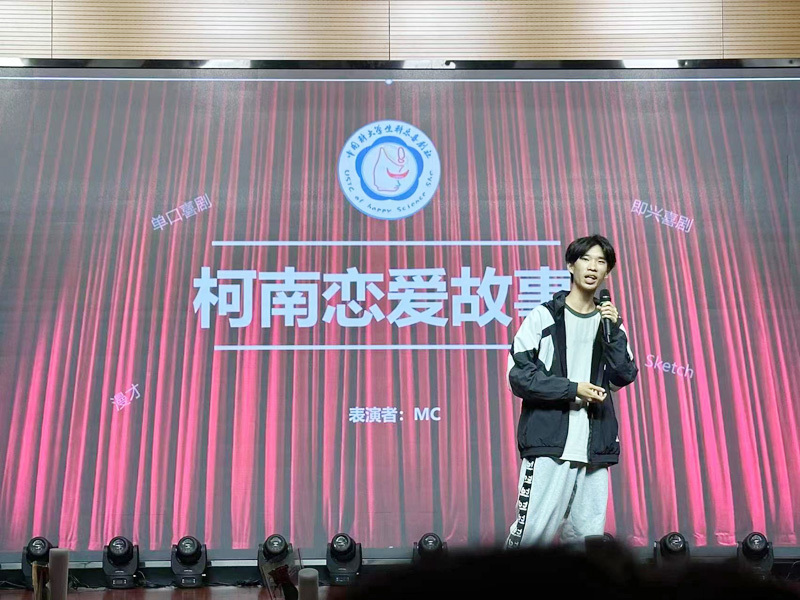 既是晚会,自然少不了欢乐的语言类节目,科乐喜剧社的MC属实给大家展现了一场精彩绝伦的脱口秀节目。《柯南爱情故事》爆笑调侃了当下科大男生普遍面对的“严峻问题”,无厘头却又令人捧腹。