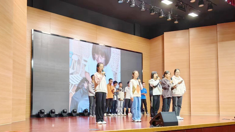 接下来则是由校主持人社为大家朗诵诗篇《月光下的中国》。朗诵者们情感充沛,字字铿锵,向我们描绘着一幅崭新的现代中国的富强图景,令我们真切感受到了当下生活的美好。生活在这个最好的时代的我们亦当自觉承担起我们肩头的责任,为中华民族的强盛贡献我们的力量。