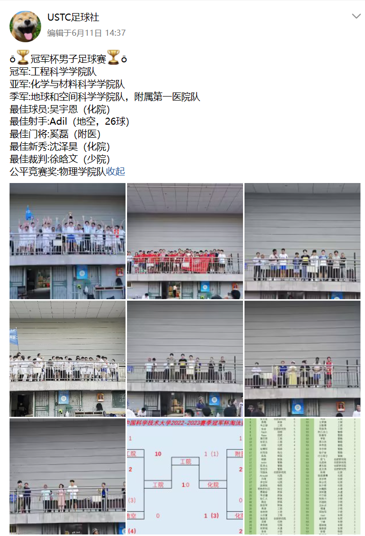2023年5月27日,10时23分,中科大冠军杯第一场1/4决赛拉开帷幕,由地空男足院队面对合肥研究院队。经历了老队员退役的阵痛后,本赛季地空男足走出了上赛季的低谷,在常规赛以5胜1平4负的战绩排名第5,而另一边的合肥研究院队的前身是科大足坛的老牌强队科学岛,常规赛位列第4,并曾在第一轮6:3大胜彼时尚未磨合的地空男足。