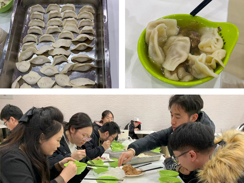 饺子包好后,由食堂工作人员送去后厨烹饪,不一会儿就端上来了热气腾腾的饺子,还搭配着美味的羊肉汤。同学们开心的吃着自己包的饺子,虽然饺子的形状各异,但都非常美味。