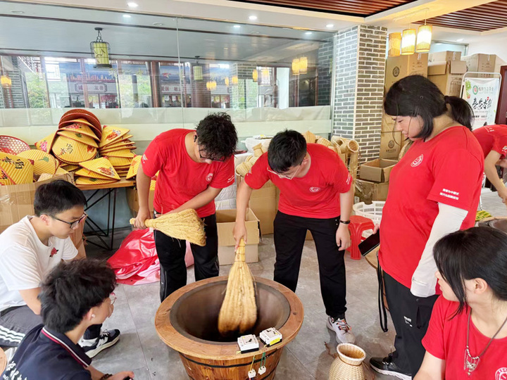 7月7日上午同学们参观了汪家祖宅、汪家老屋等等一系列红色遗址,还跟随习近平总书记的足迹更加深入地了解了大湾村的改变历程,沿途还参观了大湾村特色农产品陈列馆。下午,同学们体验了大湾村的特色旅游设施,进一步了解村里的旅游产业发展情况。晚饭后,为增进和村民的交流,深度体验乡村生活,同学们来到村里的篮球场,和村民们一起运动锻炼,同学们和村民一起学跳广场舞,还展示了提前准备的太极拳和健美操的教学。