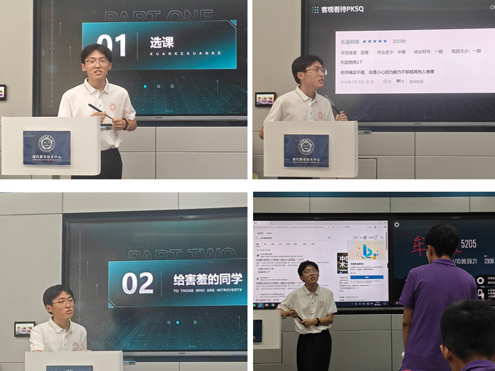 会议正式开始后,学长代表钟承奕带着精心准备的ppt上台讲解,结合自身经历,为同学们“排雷”护航,首先对于选课的技巧和容易踩的“坑”进行了讲解,如“课程详细信息的查看”“如何看待评课社区”等,学长举了诸多身边的例子,让同学们抓住要点,完善了选课的思路和细节。