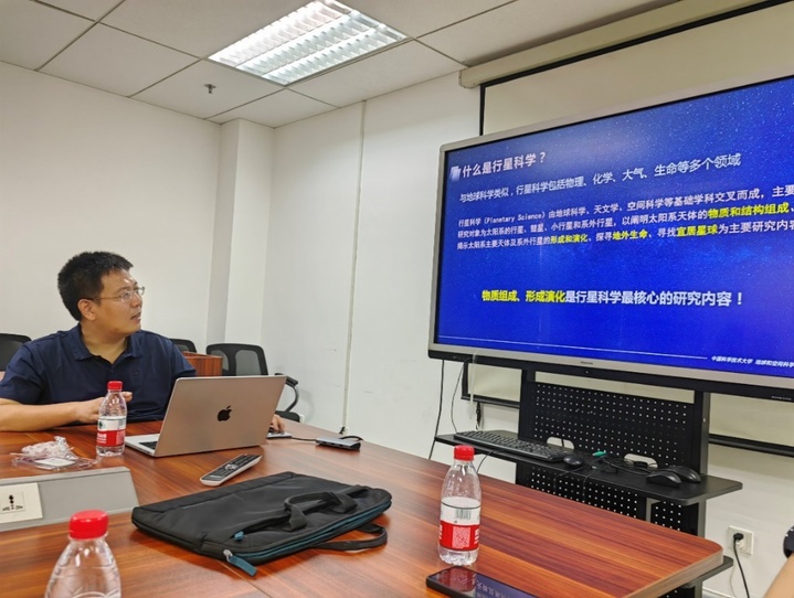 从习近平总书记关于深空探测的讲话精神出发,倪怀玮副院长向同学们介绍了行星科学的国内外发展态势和我校行星科学本科专业的基本情况。随着我国航天事业的发展,国家在行星科学领域产生了十分迫切的人才需求。通过人才培养和引进,中国科大近年来形成了一支高水平的行星科学师资队伍,制定了科学合理的本科和研究生培养方案,2023年获批设立行星科学专业并进行了首次招生。在软科中国大学专业最新排名中,科大行星科学专业与地球化学专业均排名全国第一,表明地球化学与行星科学系的师资力量和培养模式得到外界的高度认可。