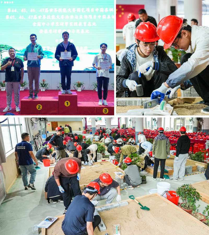 《徽州微景观造园》课程是根据世界技能大赛园艺项目开发创造出的劳动实践类课程。内容涉及数学、美术、历史、物理、生物五大学科,涵盖了土壤、植物、测量、徽派建筑等知识,锻炼学生的综合协调、团队协作、动手实践、植物认知、创新学习五大能力。此课程依托世界技能大赛园艺项目中国集训基地的资源、技术、品牌优势及徽州地域文化特色,让学生在劳动过程中感受大国工匠精神、技能成才之路、制造兴国之志。