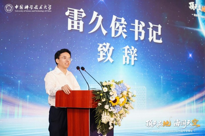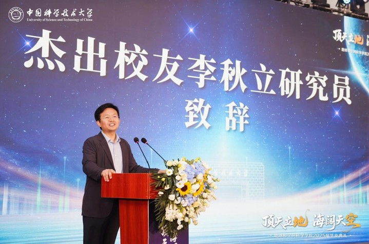 倪怀玮为2025届毕业生送上期望与祝福,并代表全院全体教职工向毕业生们表示最热烈的祝贺。他回顾了毕业生们在学院的学习和生活经历,肯定了同学们在科研、学习和社会实践等方面所取得的一系列成就,并鼓励同学们在未来的旅途中继续保持家国情怀,勇于探索登攀科研高峰,坚守严谨、创新、求实的科学家精神,为国家和民族的发展做出更多贡献,让中国科大地空学子的声音飘扬在更高、更广的舞台。
