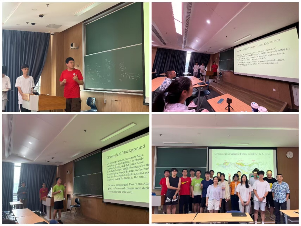 在野外实习之前,地空学院潘路教授联合多伦多大学初旭教授以及中科大邹宇飞、盛一笑和邓正宾教授向学生们开展了一系列前置基础知识教学,教学内容涉及岩石矿物、地质年代、板块构造、阿尔卑斯山区域地质历史、地球深部地震波层析成像、大气动力学和全球气候变化等方方面面,也含括了法国文化和实习注意事项。课程全部系英文讲授,强调老师和同学的互动交流,旨在帮助同学们提前适应跨国考察环境,树立严谨的学术态度与良好的行为规范,确保在实习过程中充分展现科大学子的专业素养与健康精神面貌。