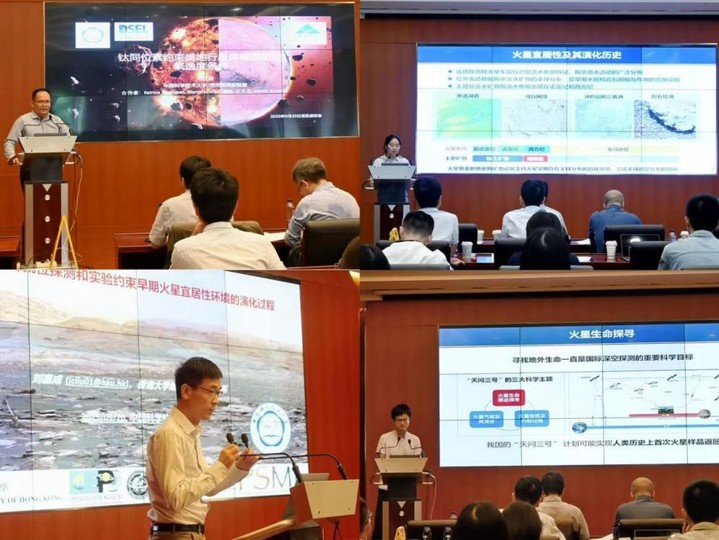 下午的专题研讨环节聚焦火星前沿研究,设置了“火星内部结构”、“火星表面环境”与“火星生命探测”三大议题。项目组成员围绕这些热点问题作了精彩报告,与会专家则针对报告内容提出了具体建议,促进了学术思想的碰撞与融合。