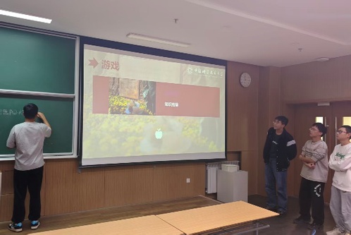 交流完成后,团支书为增进理解、活跃气氛,开展了推理和知识抢答游戏。游戏巧妙地将诗词与红色人物、红色历史相结合,增进了同学们对先驱者与历史事件的了解与崇敬之情。