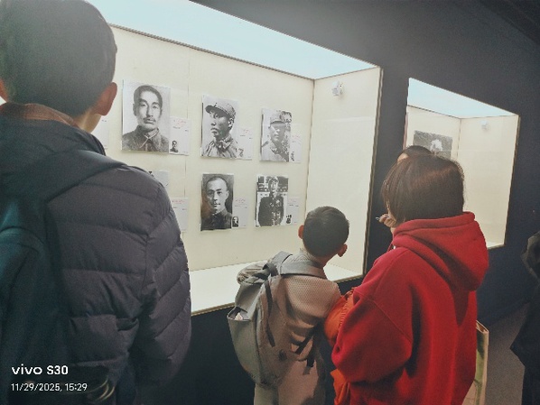 移步展厅后半区域,140余张珍贵历史照片在柔和的灯光下有序陈列,瞬间将团员们的思绪拉回那个风雨如晦的年代。照片中,有战士们手握钢枪、在战壕里坚守阵地的坚毅身影,脸上的硝烟遮不住眼中的斗志;有群众们推着小车、冒着炮火为前线运送物资的忙碌场景,朴实的动作里满是对民族的热爱;还有少年们举着标语、在街头高呼抗日口号的稚嫩脸庞,清脆的声音中饱含着保家卫国的决心。每一张照片背后,都藏着一段刻骨铭心的抗战故事 —— 有的记录了某次战役的惨烈交锋,有的定格了军民同心的温暖瞬间,有的见证了先烈们宁死不屈的英雄气节。团员们放慢脚步,逐一在照片前驻足,有的轻轻指着照片中的细节与同伴交流,有的凝视照片陷入沉思,还有的拿出手机拍下照片,想要留住这些珍贵的历史记忆。随着讲解员缓缓讲述照片背后的故事,大家愈发深切地感悟到,中国人民抗日战争的伟大胜利,是无数先烈用鲜血和生命换来的,是全体中华儿女同仇敌忾、奋勇抗争的结果。伟大抗战精神中蕴含的爱国情怀、民族气节、英雄气概与必胜信念,在这一刻深深烙印在团员们心中,让大家的爱国之情愈发浓烈,肩上的责任之感愈发强烈,纷纷表示要以史为鉴,传承红色基因,用实际行动践行新时代青年的使命担当。
