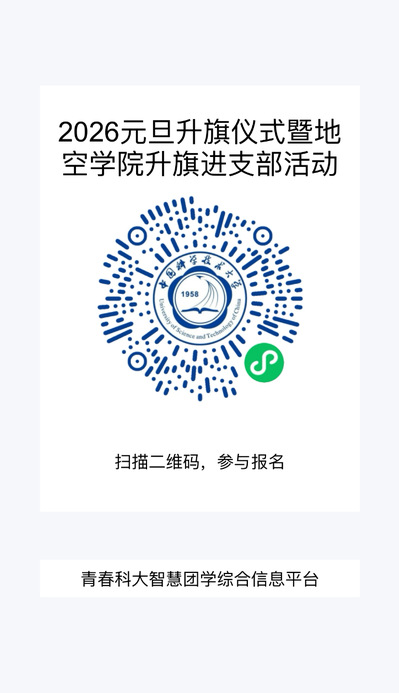 新年将至,万象更新。为激励和引导广大师生校友大力弘扬以爱国主义为核心的伟大民族精神,用奋进之姿开启新年征程,奋力谱写以青春担当共筑中国梦、以团结拼搏创造新辉煌的时代篇章,特举办2026元旦升旗仪式暨地空学院升旗进支部活动,欢迎广大师生校友现场观礼。