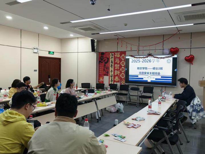 为了拉近同学之间的距离、增强班级凝聚力,同时给即将到来的元旦增添欢乐氛围,2025年12月28日晚上六点半,地球和空间科学学院2024级硕士2班于东区图书馆321会议室成功举办了元旦联欢会。本次活动首先以传统节日介绍及安全教育主题班会作为开场,并安排了趣味游戏和多项团体互动环节,同学们积极参与、踊跃配合。整个活动氛围轻松融洽,不仅为大家创造了线下交流的机会,更进一步加深了彼此的情谊,最终在温馨愉快的氛围中圆满结束,让大家在年末收获了满满的快乐与珍贵回忆。