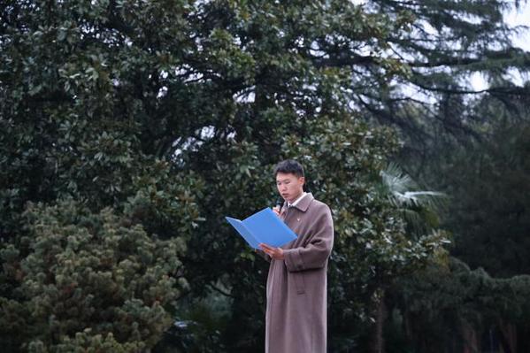 在庄重的氛围中,2025级硕士2班刘锦博同学带来国旗下演讲。他结合自身科研学习日常,分享了对“两弹一星”元勋赵九章先生的深刻感悟——从先生求学时省吃俭用买书的求知渴望,到做学问时严谨较真的治学态度,再到建国初期攻坚克难推进人造卫星预先研究的长远目光,生动诠释了先辈身上的家国情怀与科学精神。刘锦博表示,新的一年,将带着这份跨越时空的“陪伴感”,传承先辈对知识的纯粹热情、对真相的谨慎诚实,在科研道路上专注踏实、持久奋进,以微光汇聚成照亮未知的力量,回应先辈星火与时代使命。