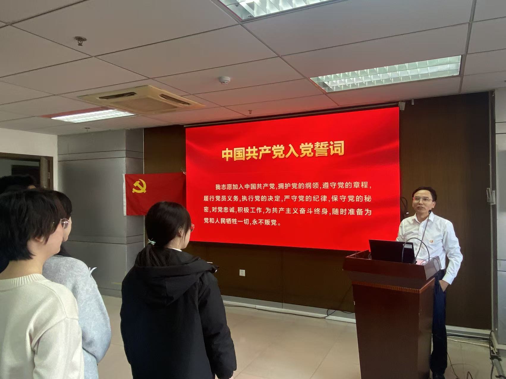 宣誓结束后,新发展党员代表任德馨发言。他首先表达了作为科研工作者与预备党员的激动与自豪之情,坦言加入中国共产党是经过长期深思熟虑的郑重选择。党的坚强领导与科学谋划、前辈科学家 “两弹一星” 精神的感召,以及身边党员同志在科研一线冲锋在前的事迹,让他深刻认识到,将个人科研理想融入党和国家伟大事业,是实现人生价值的正确道路。他表示,在今后的工作与生活中,将始终做到坚定信念、对党忠诚,持续加强理论学习,筑牢思想根基;知行合一、服务奉献,积极参与集体事务,发挥先锋模范作用,以实际行动践行誓言,为强国建设和民族复兴贡献全部力量。