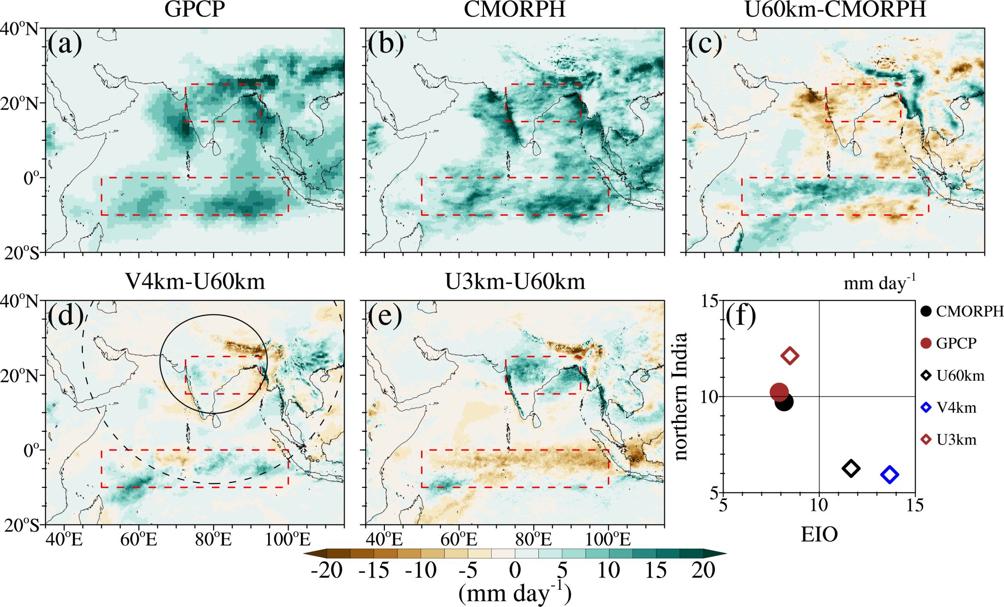 近日,中国科学技术大学大气科学先进计算实验室(LACAR)基于神威海洋之光超算平台开展了次季节尺度(30天)全球对流解析模拟试验。研究发现全球对流解析模拟可降低传统气候模式(数十公里空间分辨率)在印度半岛夏季风降水的低估偏差,提升南亚季风降水的次季节预报能力。进一步结合再分析和观测数据,揭示了南亚夏季风降水预报能力的提升与赤道印度洋雨带降水频率的改善存在密切联系。研究成果近日以“Excessive equatorial light ...